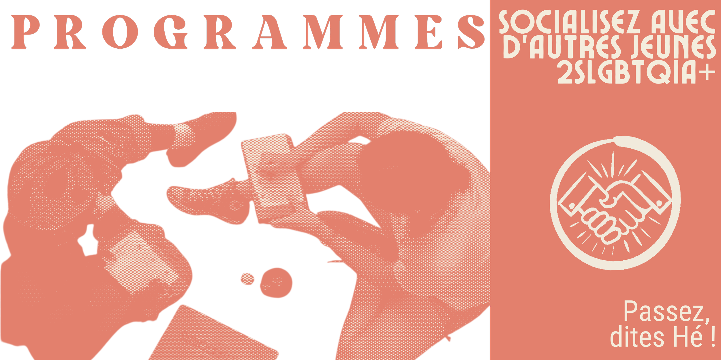 Notre drop-in jeunes adultes est ouvert à toustes les jeunes 2SLGBTQIA+ de 18 à 25 ans ! Viens passer du temps avec nous, participer à une activité, rencontrer de nouvelles personnes ou simplement te détendre dans un espace chaleureux et affirmant.
